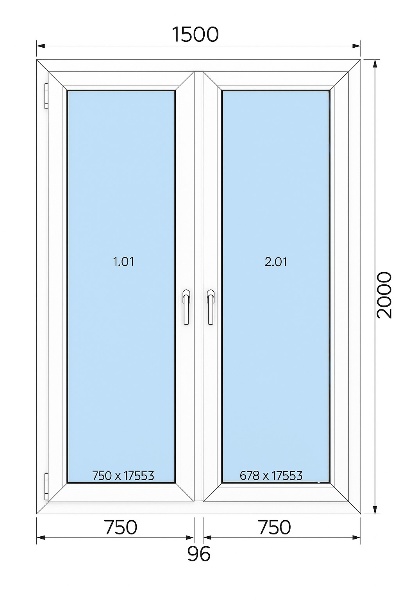 Drzwi balkonowe dwuskrzydłowe Rozwierno-uchylne PCV 1500 x 2000 mm
